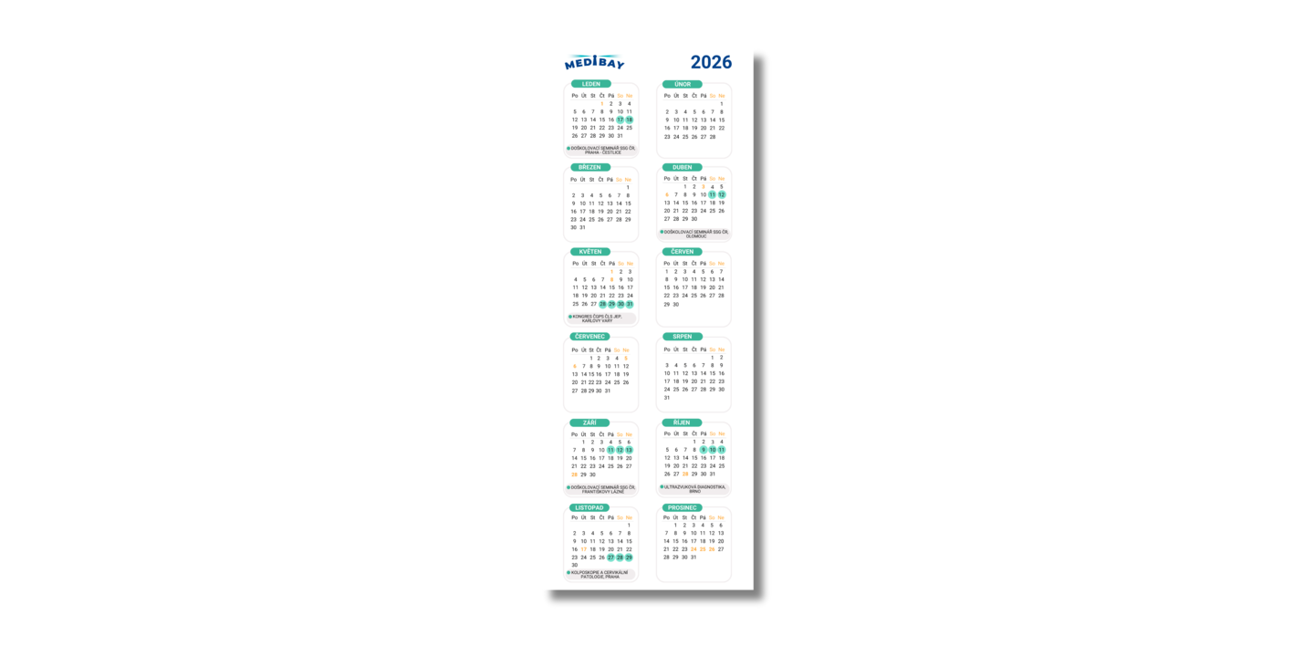 Stáhněte si kalendář pro rok 2026 s vyznačenými vybranými akcemi v PDF formátu, který si můžete uložit nebo rovnou vytisknout.